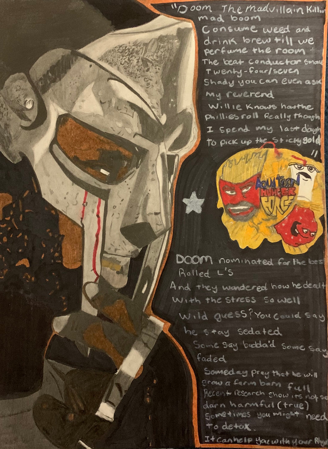 9x12in Art print of MF Doom that I recently completed, The Original has been sold but I do have 9x12in prints available.